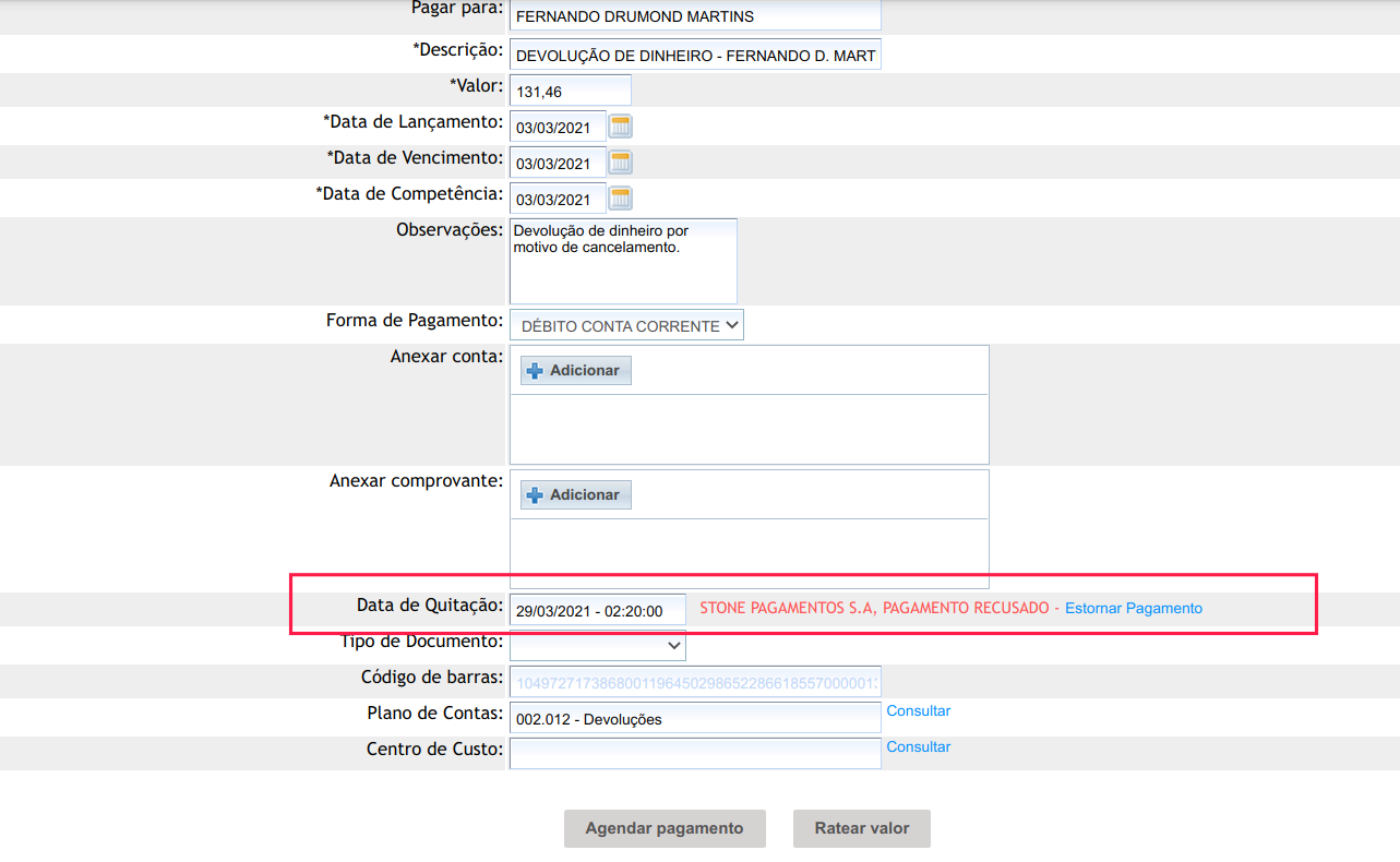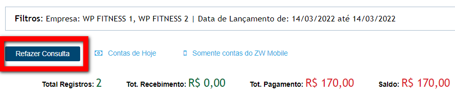 Refazer consulta" e aplique os filtros necessários para localizar o lançamento da conta de forma mais rápida;