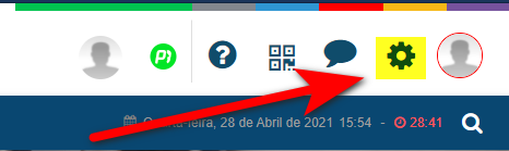 1. Acesso o módulo Financeiro, e clique na engrenagem ao lado da sua foto de usuário;