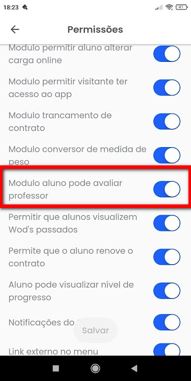 Modulo aluno pode avaliar professor“. Após clique em “