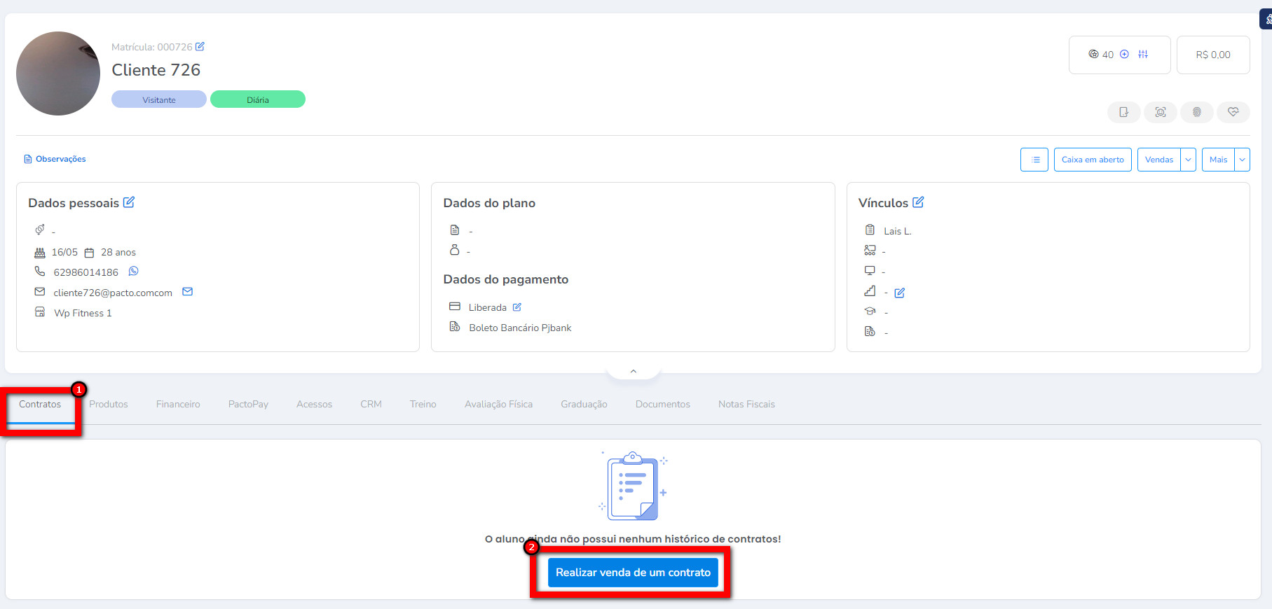Contrato" e clique no botão "
