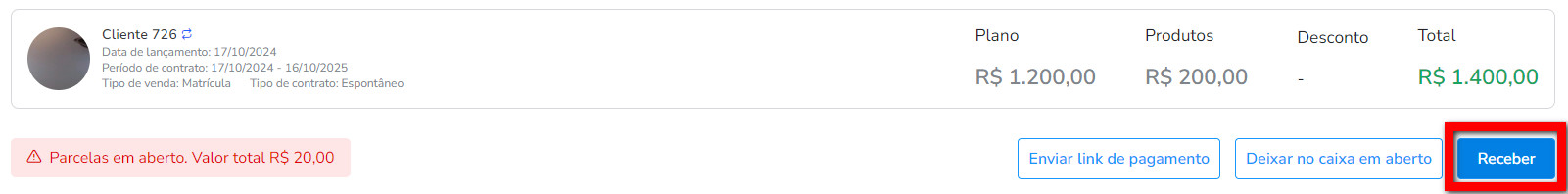 - Receber: nesta opção recebe de imediato a venda do plano.