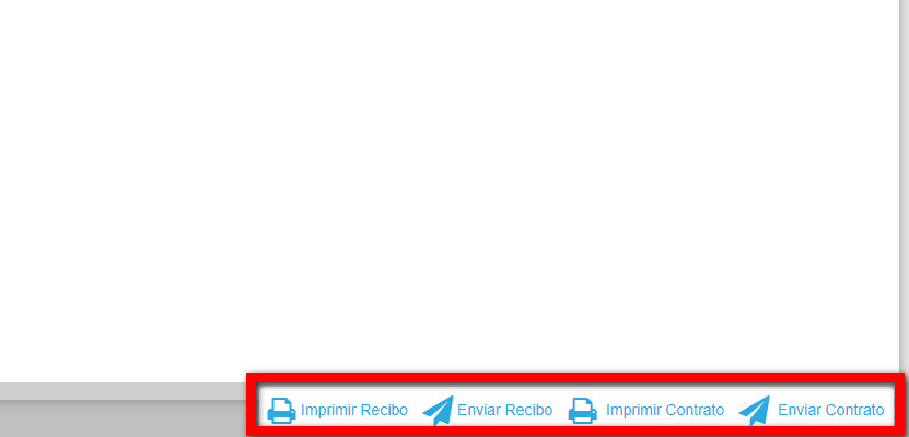7. Após será liberado as opções para baixar e imprimir o recibo e o contrato.