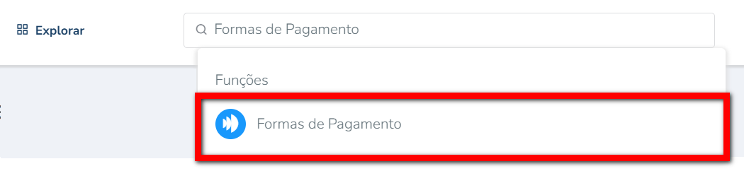 1. Na lupa de busca do sistema pesquise por “Formas de Pagamento”;