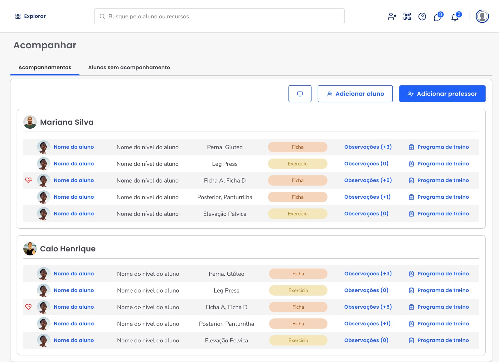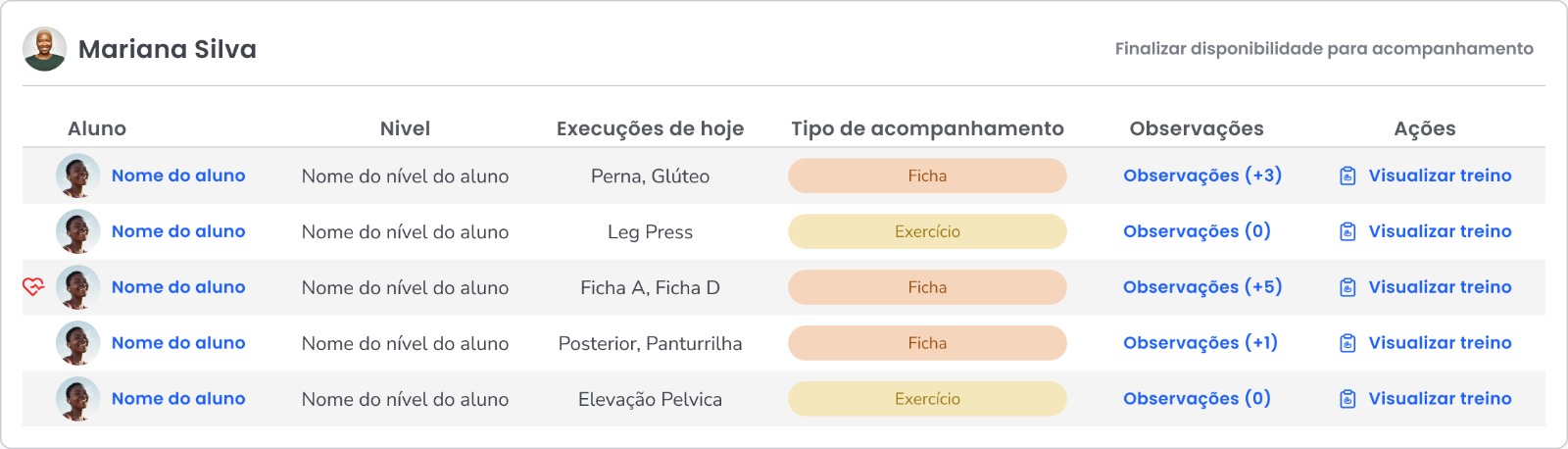 Essa nova visualização ajuda o professor a identificar quem está "solto" na academia e agir rapidamente!
