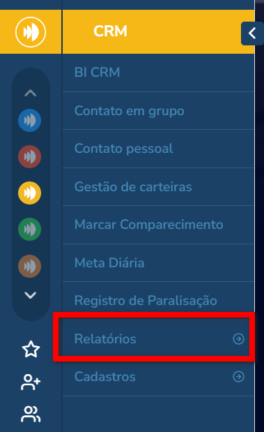 1. No menu lateral esquerdo do módulo CRM, clique em "Relatórios";