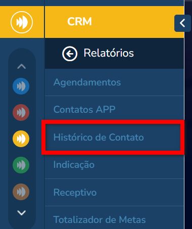 2. Em seguida, clique em “Histórico de Contato”;