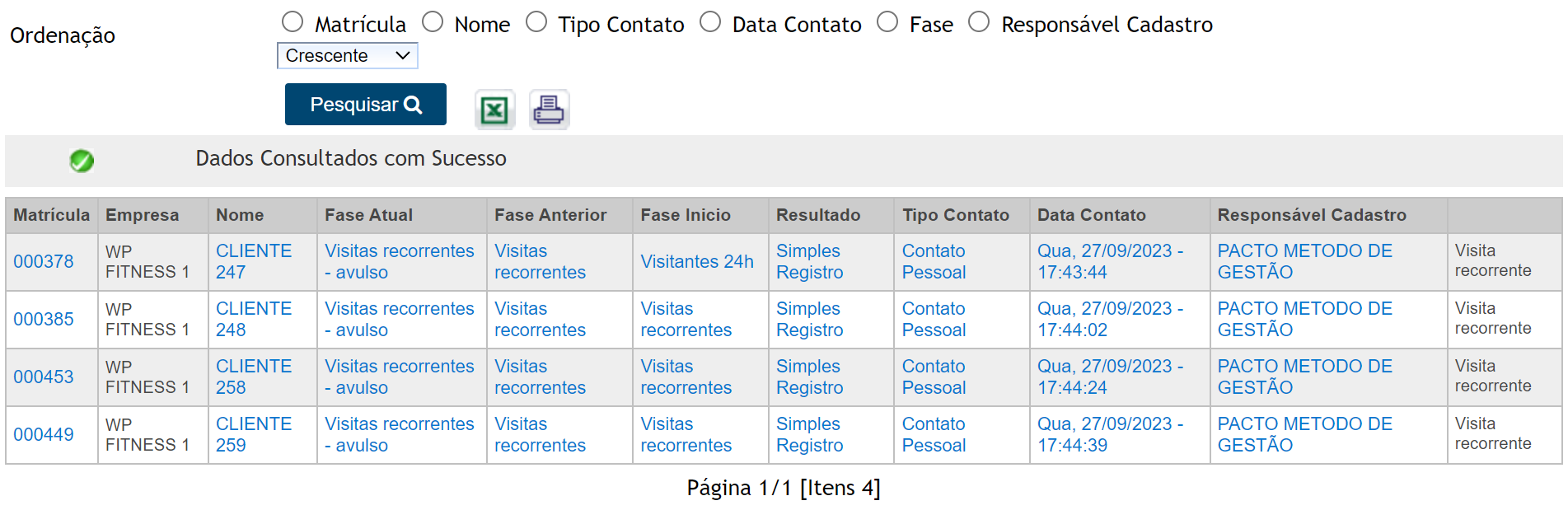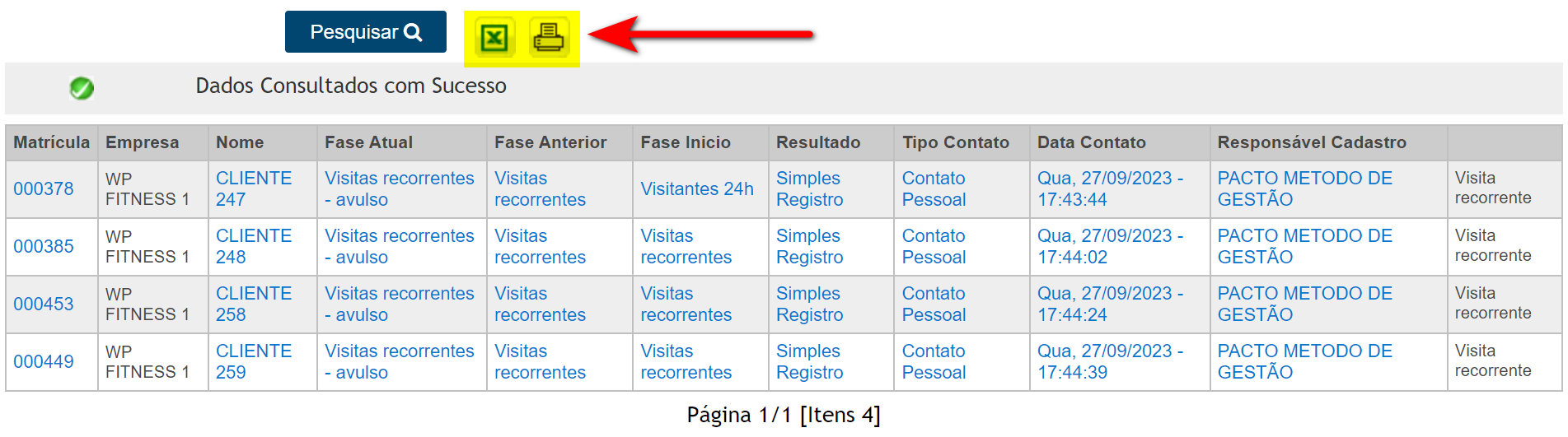 4.2. É possível exportar esta listagem para Excel ou PDF.