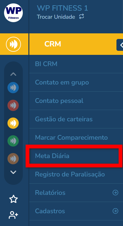 1. No menu lateral esquerdo do módulo CRM, clique sobre a opção "Meta Diária";