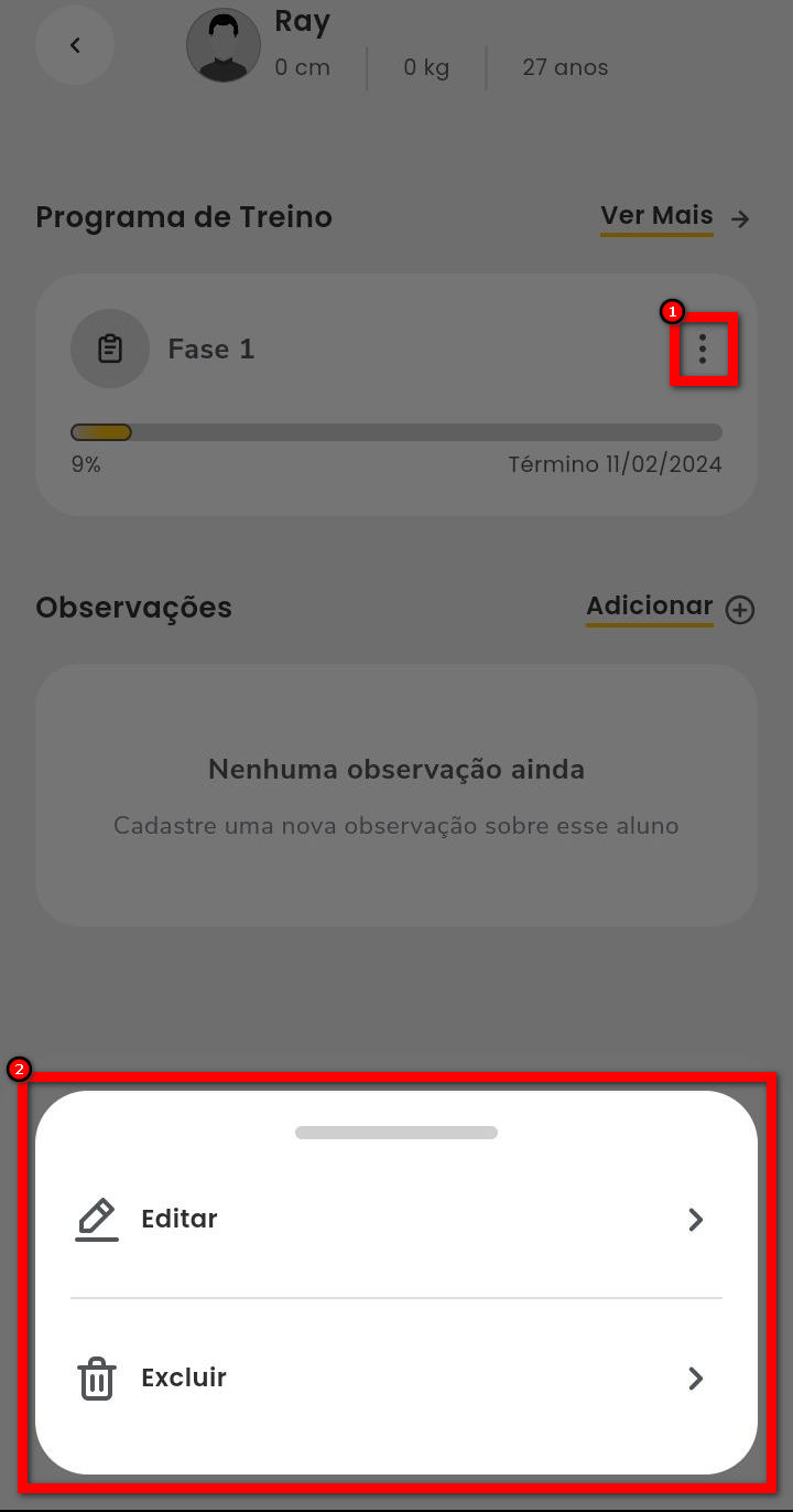 7.2. Caso deseje remover uma observação, clique no ícone da observação desejada e após em “Excluir”.