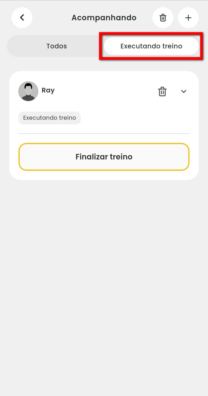 Observação: pelo app Treino é possível acompanhar qualquer cliente, independentemente se ele está presente ou não na empresa.