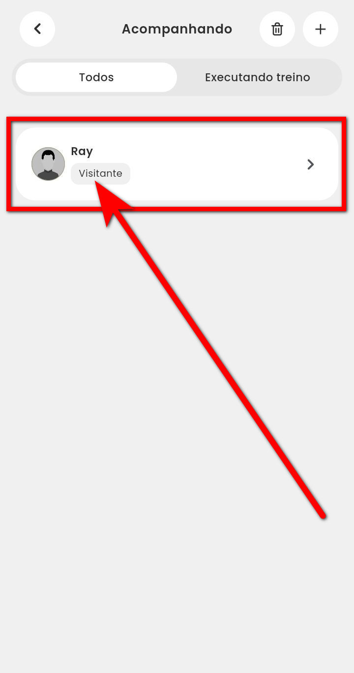 Para o professor acompanhar os treinos dos alunos criados pela prescrição de treino por IA, basta acessar o app Treino e no aplicativo utilizar o recurso Acompanhando.