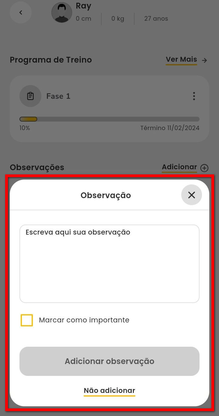 7.1. Informe a observação e caso desejar marque que esta observação é importante. Ao final clique em “Adicionar”;