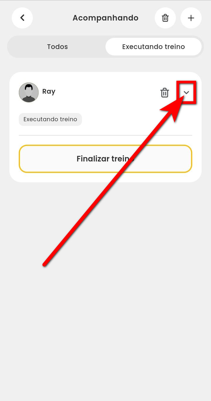 10.1. Após, no treino que esta sendo executado do cliente, clique no ícone para visualizar as atividades da ficha;