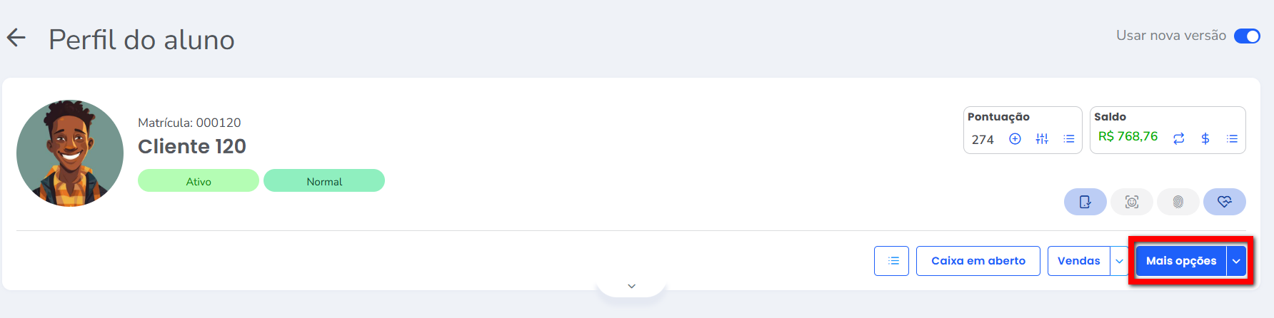 1. No perfil do cliente desejado, clique em "Mais opções";