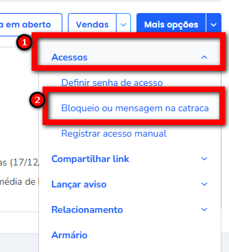 2. Em seguida, clique em "Acessos" e em "Bloqueio ou mensagem na catraca";