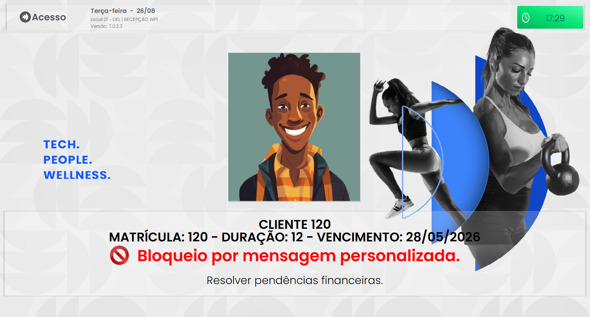 Observação: Caso deixe a data em branco, o sistema não bloqueará o aluno na catraca, mas exibirá a mensagem cadastrada.