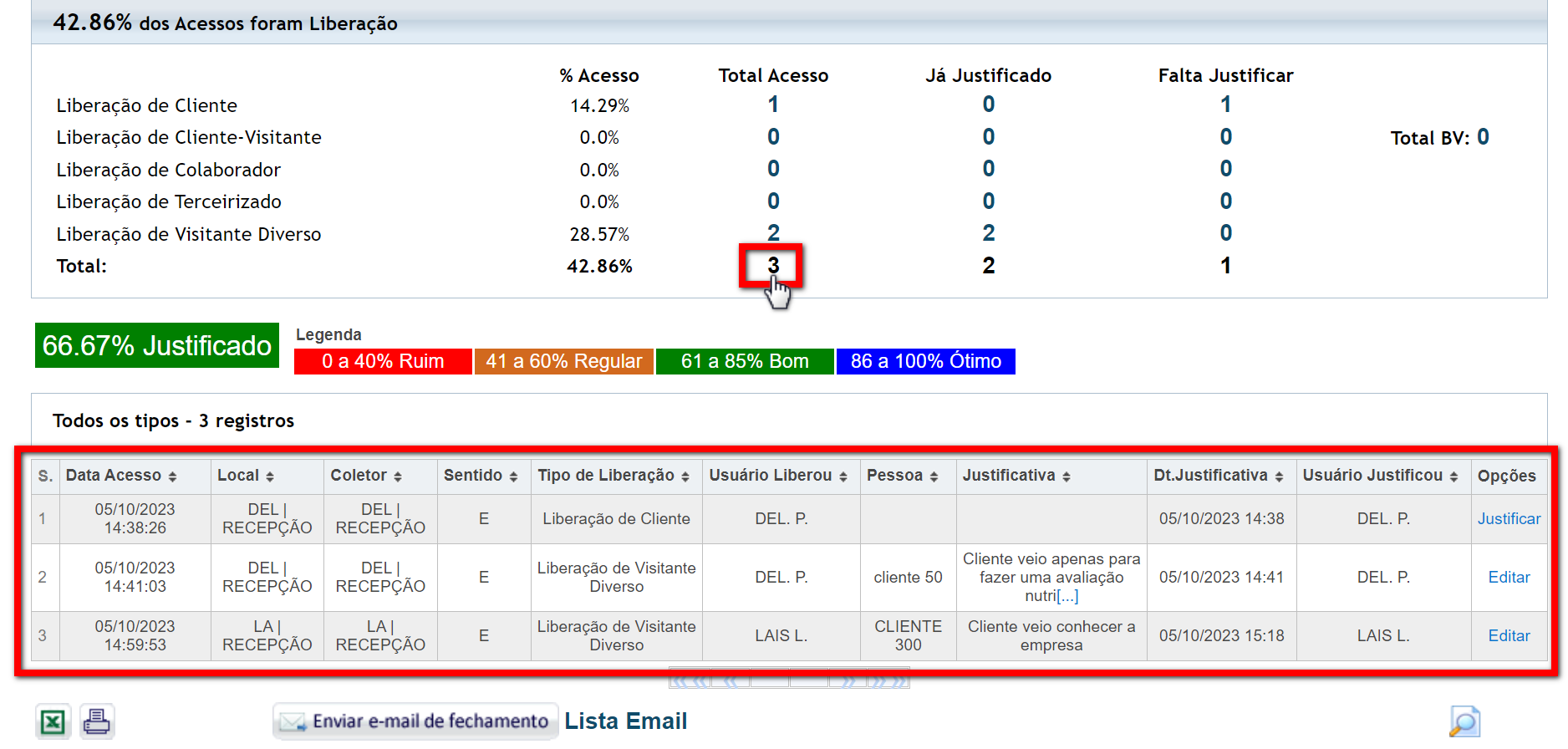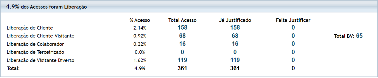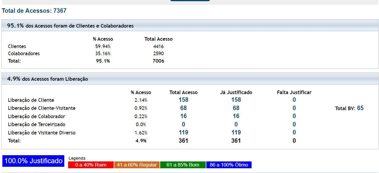 3.1. O número apresentado no campo "Total de Acessos" é composto por acessos de clientes, colaboradores e liberação de acesso manual;
