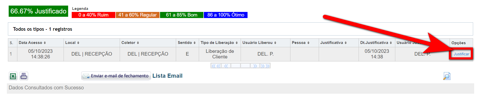 O relatório Fechamento Acessos permite que o gestor possa verificar e controlar o gerenciamento das liberações de acessos da empresa, fazendo com que todas as liberações sejam justificadas, ou até mesmo analisar como está a porcentagem de liberações.