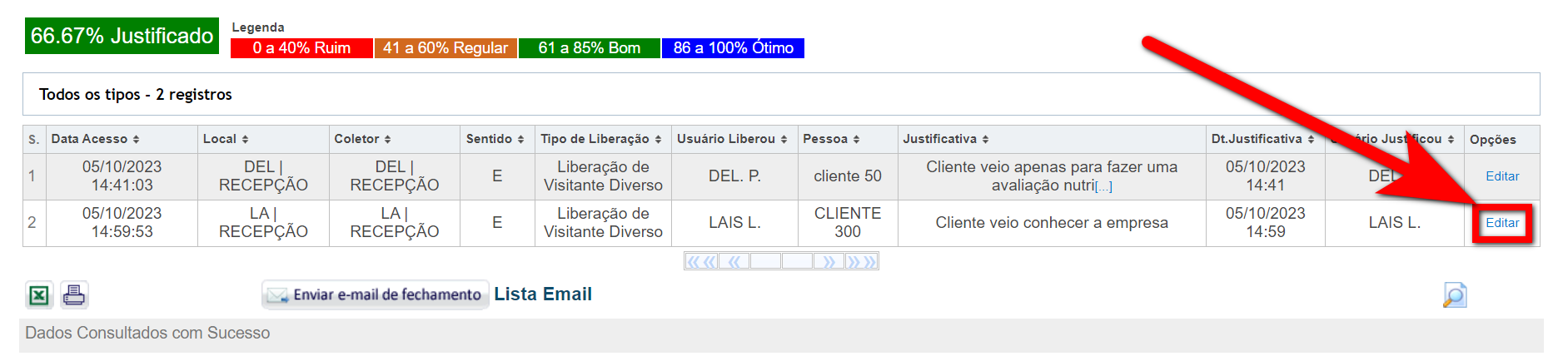 Para saber como gerar uma lista de acessos, clique aqui.