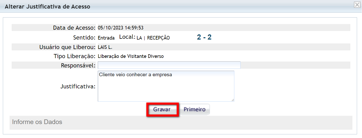 4.2.1. Preencha os dados e clique em "Gravar".