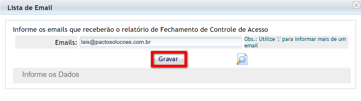 5.1. Informe os e-mails que irão receber o relatório e clique em "Gravar";