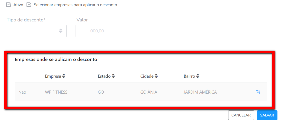 - Trancamento: selecione caso o desconto seja para produtos de trancamento;