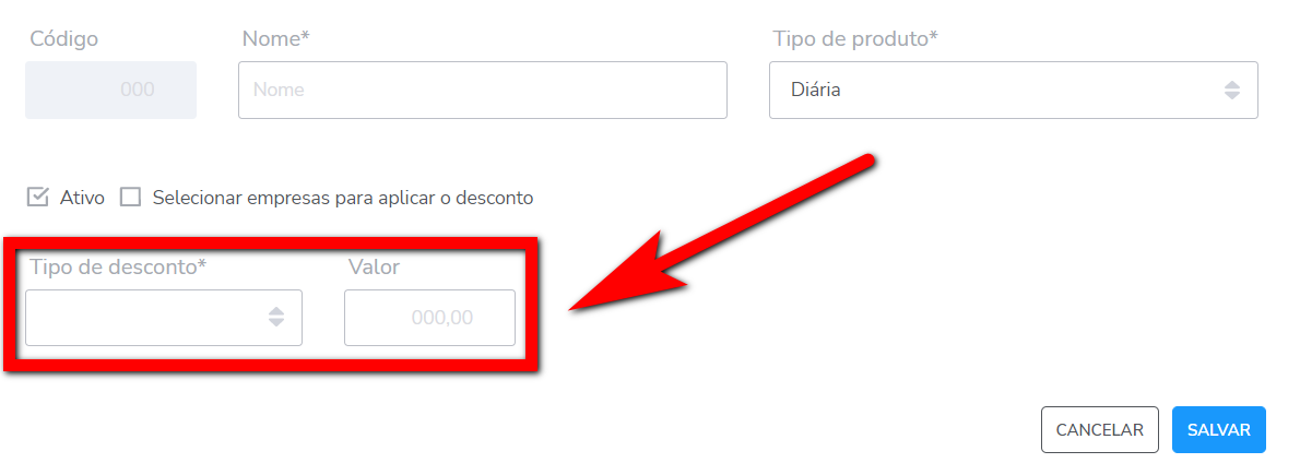 - Diária: selecione caso o desconto seja para produtos de diárias;
