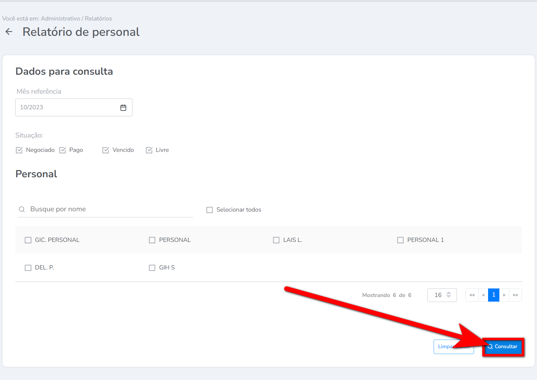 3. Após estabelecer os filtros, clique em “Consultar”;