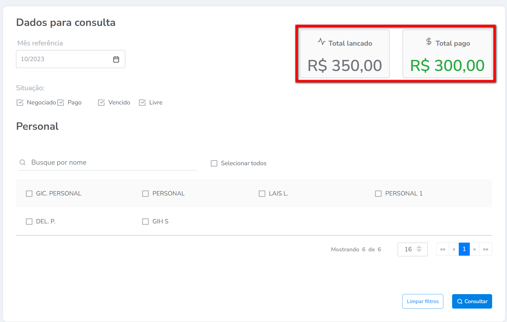 O Relatório de Personal, apresenta informações referente aos Personais da sua empresa. Através deste relatório é possível verificar os valores e se esses valores foram pagos ou não.
