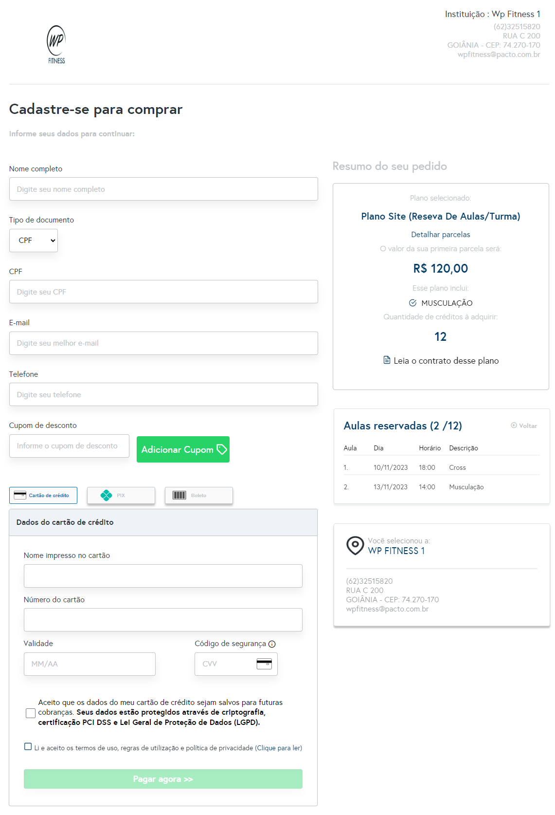 5. Será direcionado a uma nova tela, contendo os campos referentes aos dados pessoais exigidos para cadastro de cliente e também terá os dados da compra;