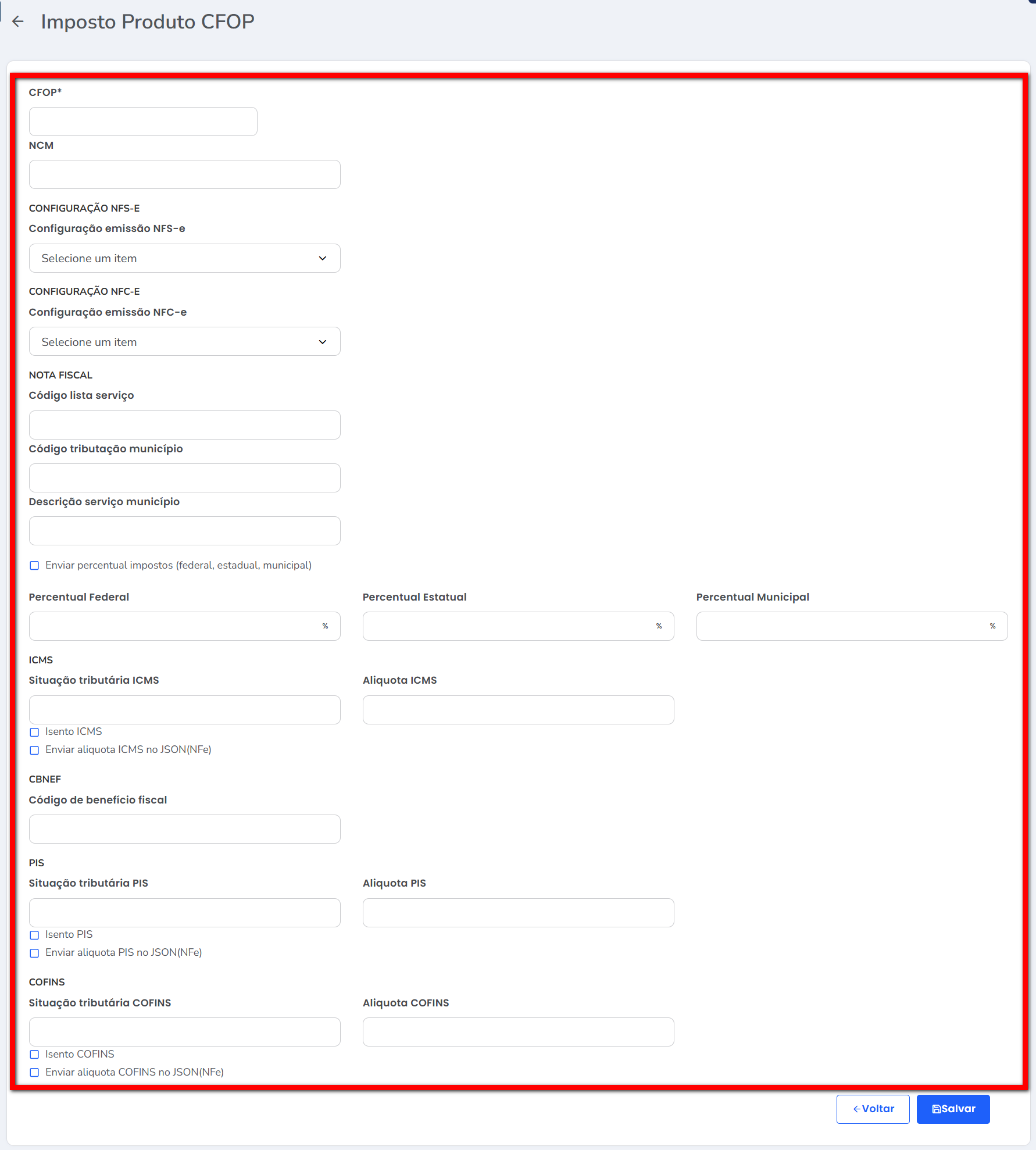 Configurando imposto padrão através do CFOP