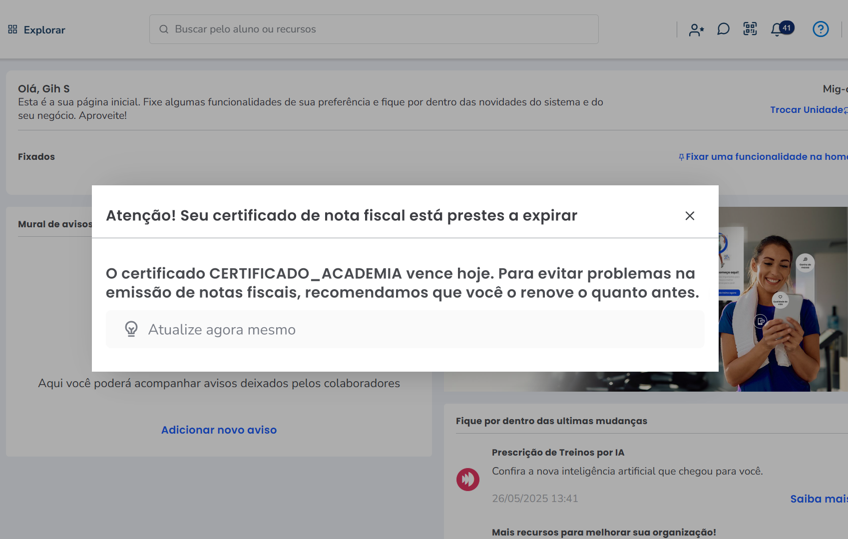 Notificação de certificado vencido