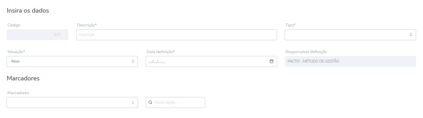 - Marcadores: selecione neste campo qual o tipo de informação que deseja adicionar ao termo e o sistema exibirá todas as tags associadas a ela.