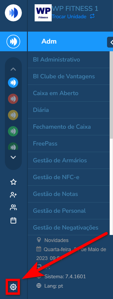 1. No módulo ADM, clique na “Engrenagem“;