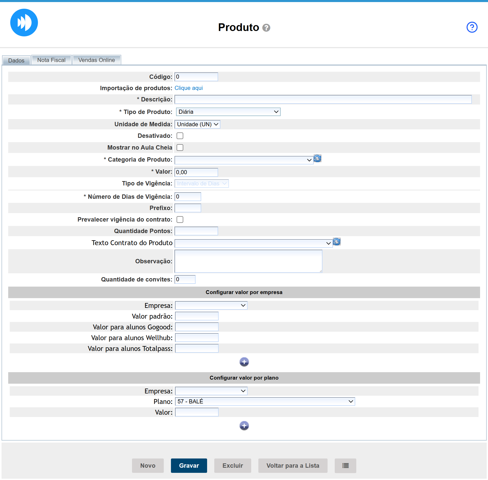 - Valor para alunos Totalpass: preço específico para alunos vinculados ao integrador Totalpass.