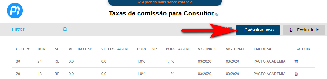 Para saber como gerar o relatório de comissão para os consultores, clique aqui.