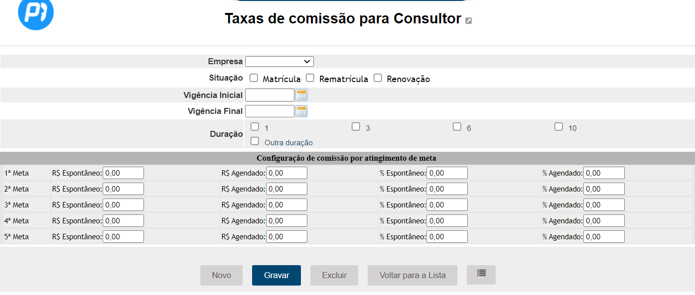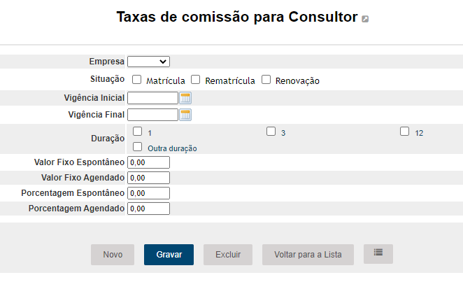 - Empresa: selecione para qual empresa será a taxa de comissão cadastrada;