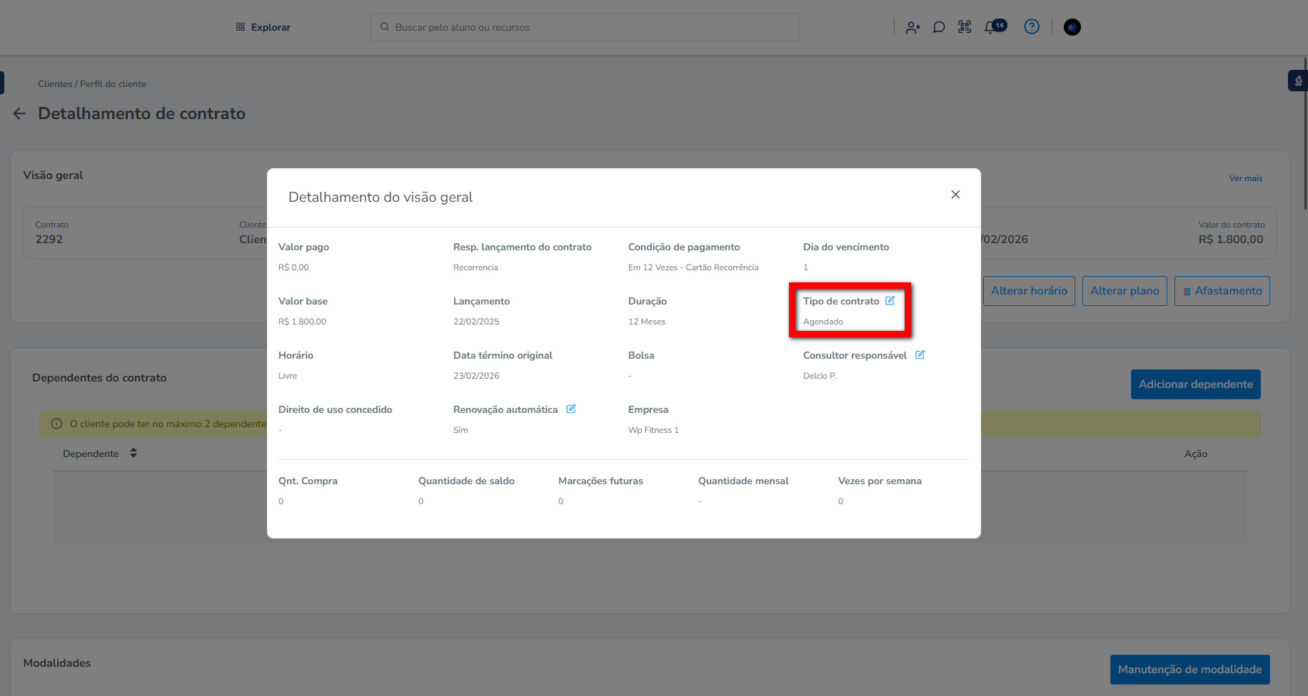 Essa informação pode ser verificada detalhando o contrato do aluno: