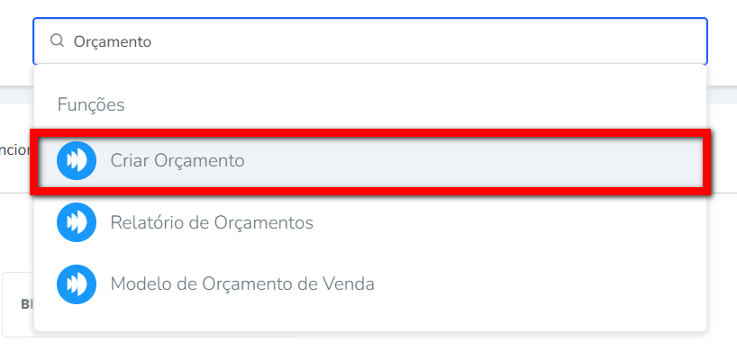 1. Na lupa de busca, pesquise por "Criar Orçamento";