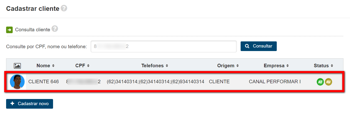 2. No campo "Consulte por CPF, nome ou telefone", informe o CPF do cliente que deseja transferir para esta unidade, e clique em "Consultar";