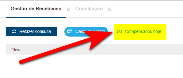 - Compensados hoje: ao clicar neste filtro será apresentado todos os recebíveis previstos a compensarem na data que está consultando;