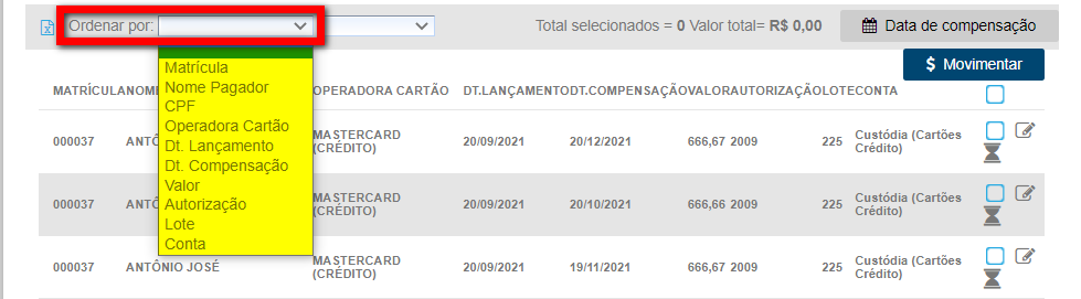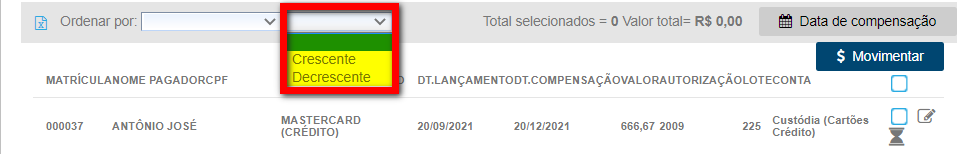 Para saber como alterar data de compensação, clique aqui.