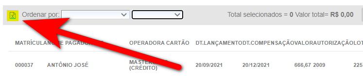 4.3. Caso deseje gerar um documento desta lista, basta clicar sobre o ícone , para exportar para o Excel;