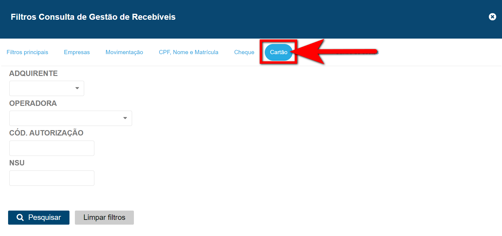- NSU: caso queira localizar um recebível pelo código de NSU basta informar neste campo.