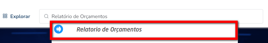 1. No módulo ADM, no campo de busca inteligente pesquise por "Relatório de Orçamentos";