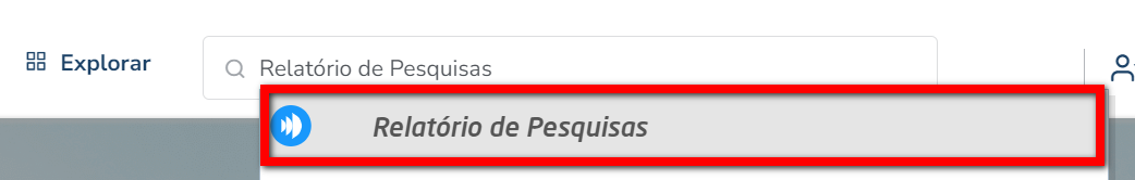 1. Na lupa de busca do sistema pesquise por "Relatório de Pesquisas";