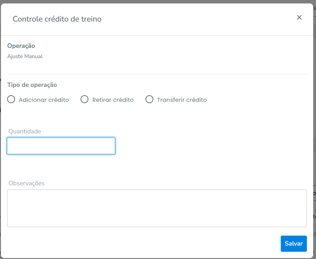 - Quantidade: informe o número de créditos que deseja ajustar;