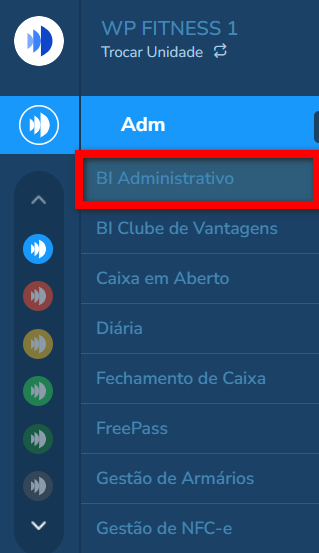 1. No menu no módulo ADM clique em “BI Administrativo”;