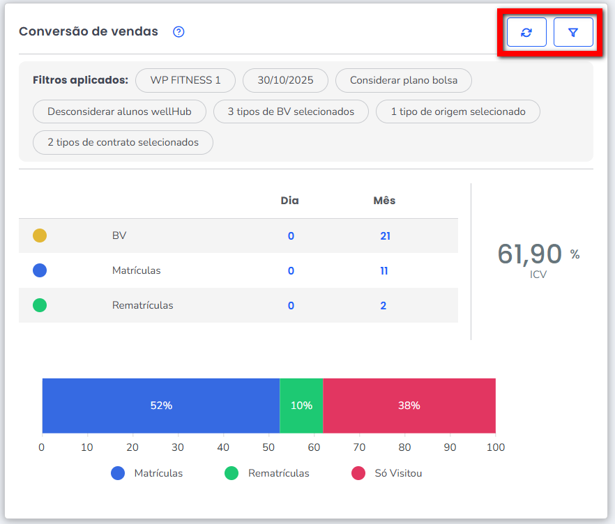 3.1. No ícone é possível atualizar as informações do BI Conversão de Vendas;