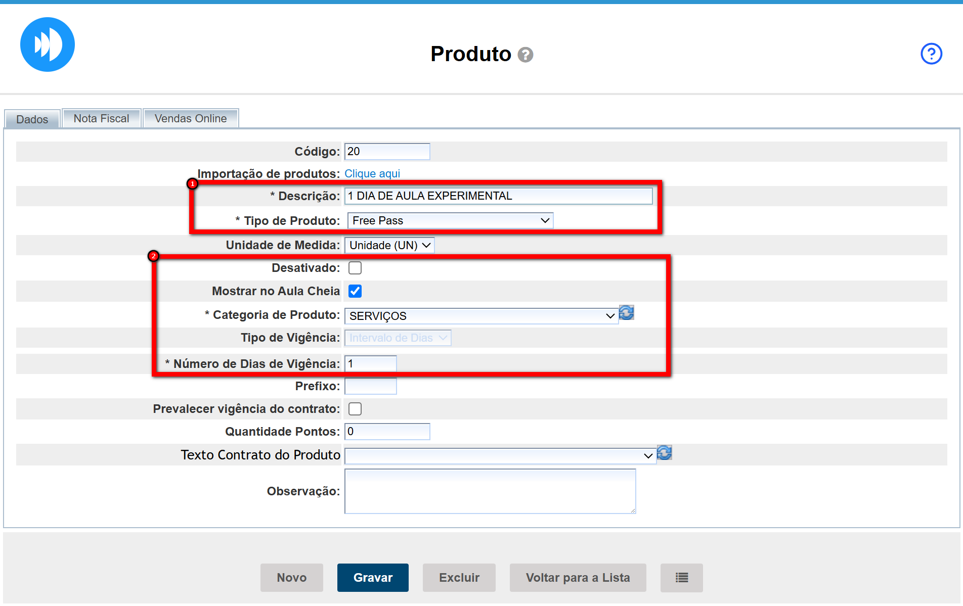 - Número de dias de vigência: a quantidade de dias de acesso com esse produto;